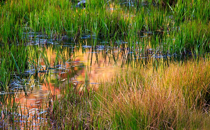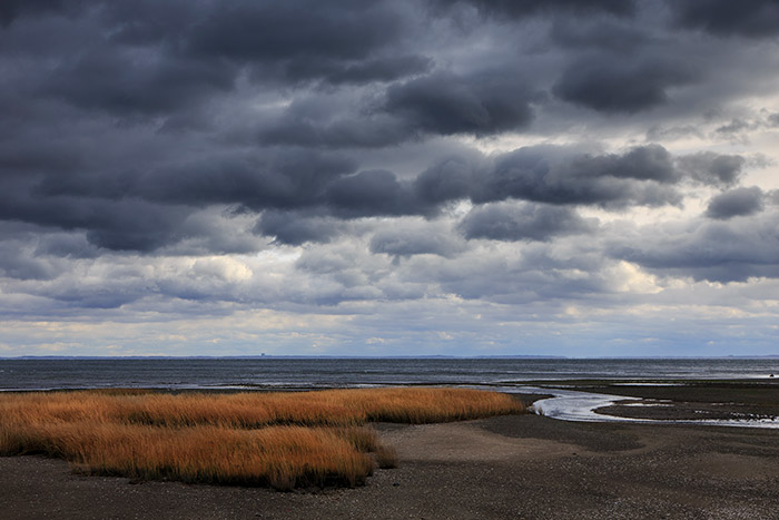 A bank of clouds moves in; a blush of light lingers at dusk; a solitary tree filters the sun on a winter day. Autumn colors glimmer in a watery marsh; a tumultuous sky looms over a choppy sea; grasses reflect like brushstrokes in a still pond. Mist, ice, rain, wind. These images happen at the water’s edge.